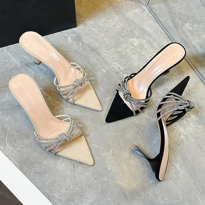 Hot-selling Women's High Top High Heel Shoes Spring Summer New Rhinestone Sexy Pointed Toe Anti-Slippery Rubber Outsole Sandals